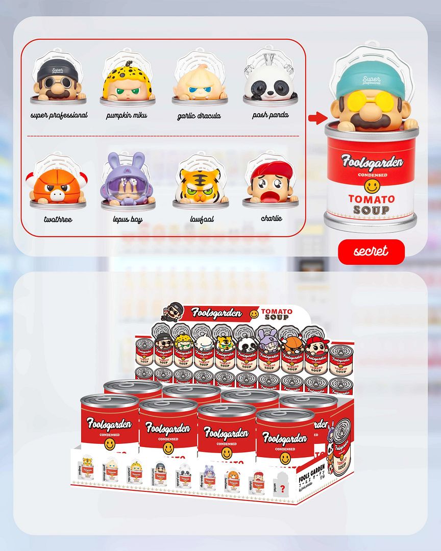 Whether you're a seasoned collector or new to the game, this series is a must for fans of tongue-in-cheek art toys with a bold, graphic edge. Shop now at: foolfoolshop.com - Don’t miss your chance to add a full course of Tomato Soup weirdness to your shelf.