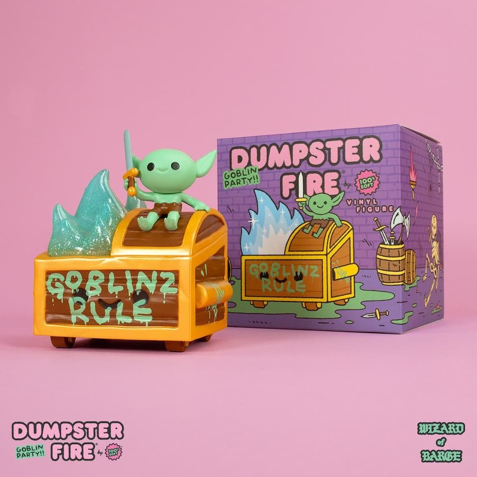 The trash goblins have arrived, and they’re here to party! 100% Soft has teamed up with Wizard of Barge to unleash the Goblin Party Dumpster Fire, a brand-new vinyl figure that transforms chaos into treasure. This special edition features the classic Dumpster Fire design, decked out with “Goblinz Rule” graffiti, glittery green flames, and an exclusive goblin companion perched on top—complete with a detachable sword for all your garbage-fighting needs.