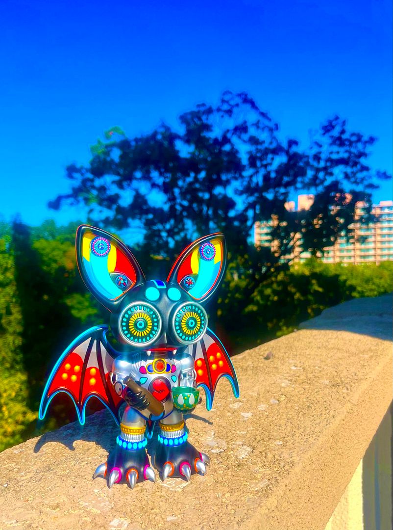 We have been following the progress of this for some time now and it's truly impressive to see what has been done - in terms of production with this figure, like WHOA!!! MindSponge’s signature blend of psychedelia, retro-futurism, and Art Deco flair shines in every curve and detail, brought to life in durable, gallery-level vinyl crafted by the same makers behind Ron English, Joe Ledbetter, Quiccs, and Jeremy Madl figures. Each KaleidoBat comes in a full-color box with an insert card that expands the ever-growing MindSponge universe.