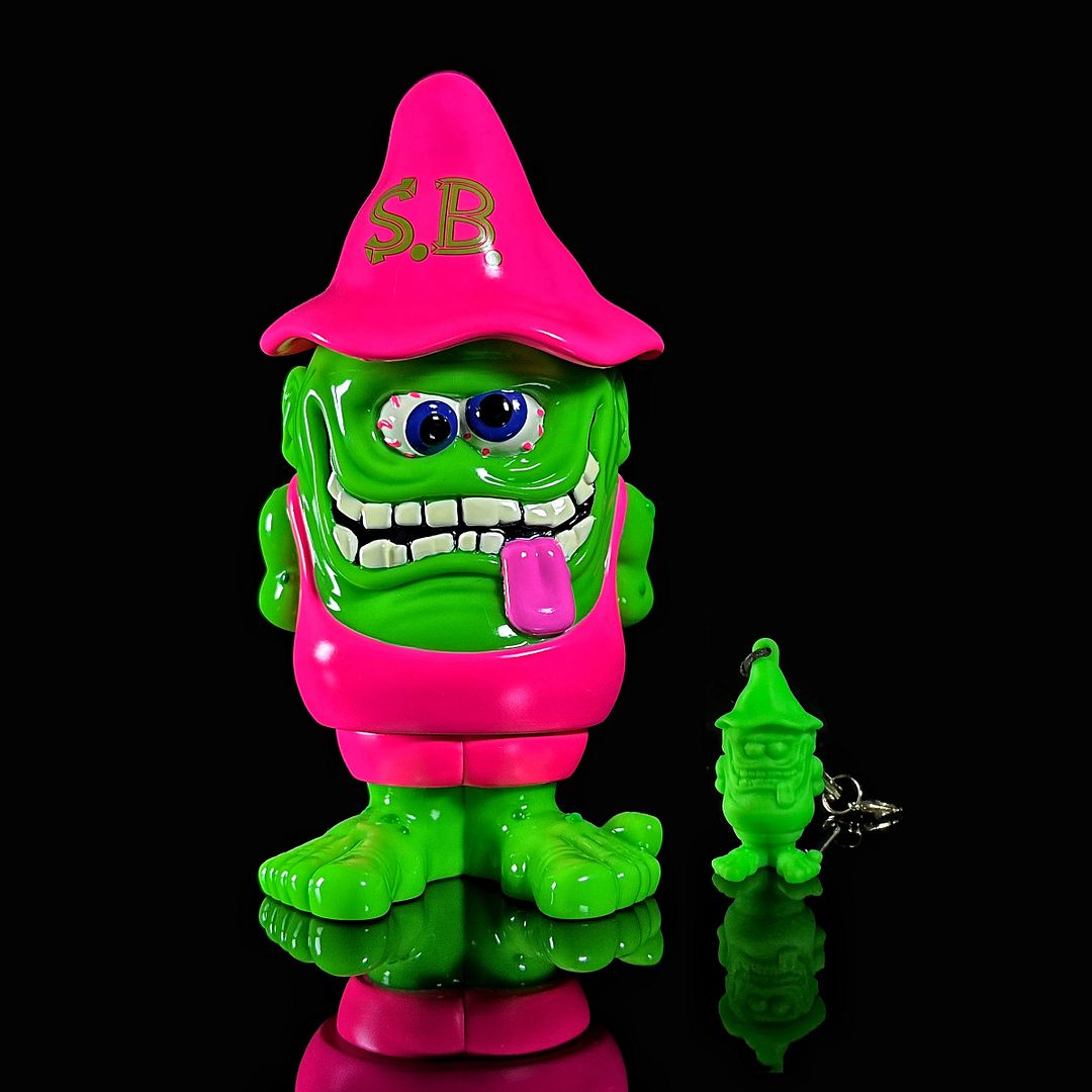 The debut OG Version comes cast in premium vivid green soft vinyl, dressed with masked sprays in pink, white, black, blue, and red. Finishing touches include a custom logo decal, premium headed bag packaging, and some extras: each figure includes a mini resin Seltsam Brain charm and a matching spot UV sticker.