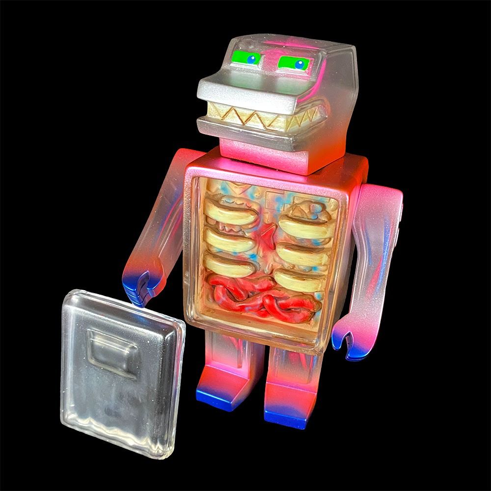 This new VISIBLE Edition is done in clear soft vinyl with wild sprays, hand-painted details, and some killer internal sculpting that makes the whole thing pop. I think the design is seriously cool... like, how can you not love a see-through robot dino with guts?!