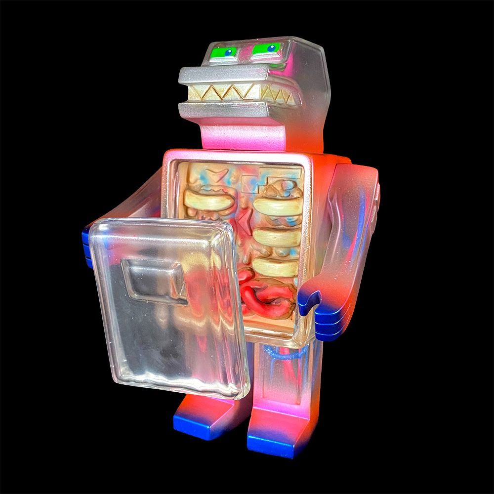 Toy Art Gallery is back with another wild release... and this one seriously hits that retro robot vibe! The Dino-Bytes figure, designed by the ever-creative Joseph Harmon (@joseph_harmon) in partnership with TAGTOYS, stands about 6" tall and looks like it stomped straight out of an old-school arcade game. It’s got articulation in the head, arms, and legs... and even features a removable door revealing some gnarly visible guts inside!