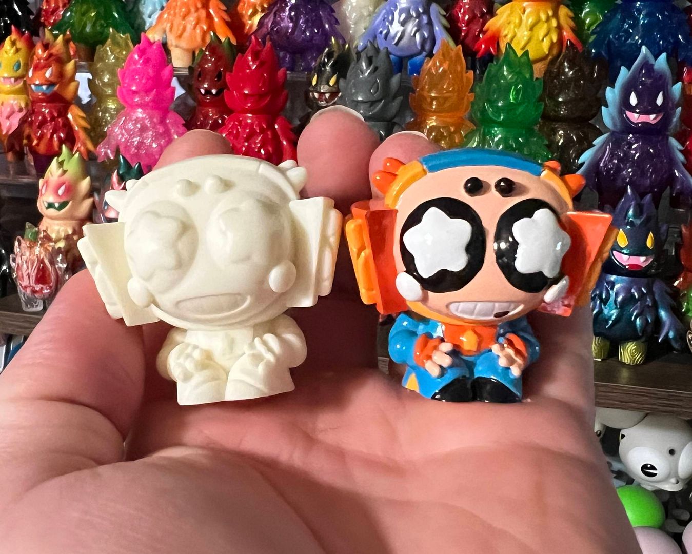 In my video, I show both figures side by side, digging into their details, textures, and finishes. The blanks are super smooth and perfect for customizing, while the painted edition totally nails that “mini designer toy” vibe. I gotta say, I love how much personality they both have—especially when displayed together. Even at their small size, these pieces have presence. They feel solid, well-cast, and polished, with only minimal cleanup needed if you’re planning to paint your own. The original colorway looks sharp and professional, with clean paint lines that catch the light beautifully.