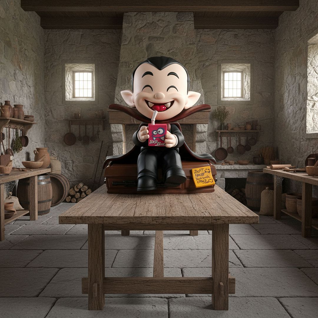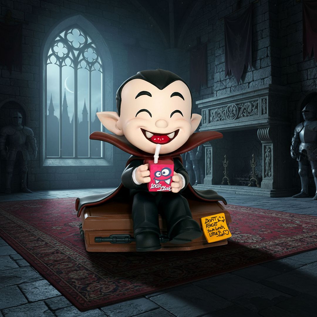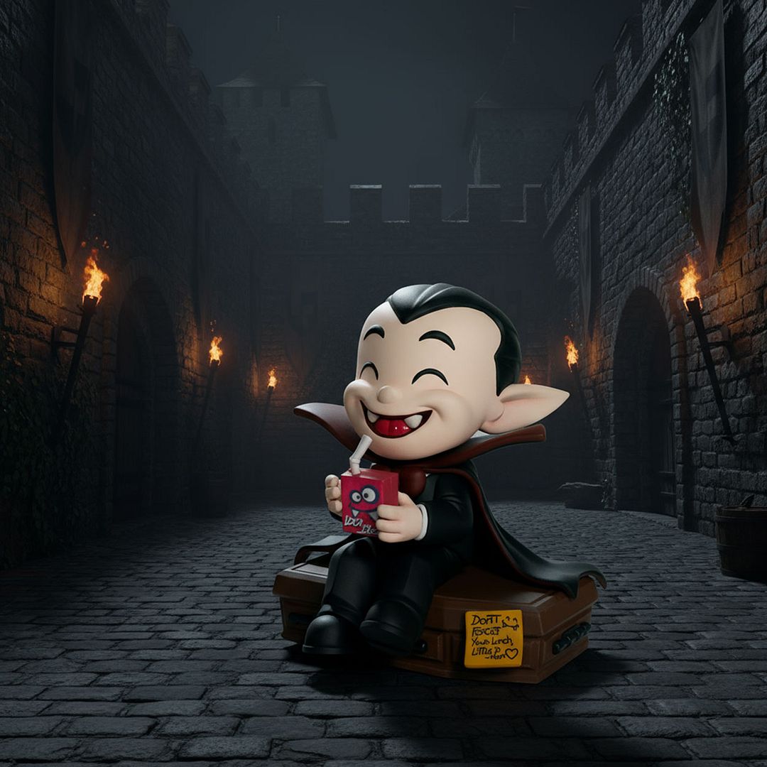What’s up everyone — I just unboxed something spooky, funny, and seriously well-made... the “Little D” art toy from the Munching Terrors line by Munching Terrors x Bomb Arte, designed and sculpted by the insanely talented João Sousa. This little dude is basically Dracula as a kid — sitting right on top of his own coffin, sipping a juicebox of blood like he’s on recess. And the kicker? There’s a sweet little note from his mom that says, “Don’t forget your lunch, Little D. — Mom.” That’s the kind of storytelling detail that totally makes this figure stand out!