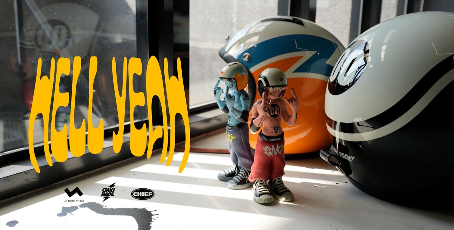 “HELL YEAH! This isn’t just a collectible… it’s a race that drives straight into reality.” On the track, speed is the only language… on the streets, style is your attitude. JTSTUDIO is flooring the gas with GAKI RACE, its original IP built around underground racing culture, high-octane styling, and that gritty garage energy — and now it’s teaming up with Chief Helmet, Taiwan’s premier vintage helmet brand, for a full-throttle crossover that hits both lifestyle and art toy collecting at once. This collaboration isn’t just figure design inspired by helmets… the helmet itself is part of the release. JTSTUDIO and Chief Helmet have created the Chief x Gaki Race “HELL YEAH!!” helmet featuring real-deal vintage racing aesthetics, custom graphics, and collectible wearable design. This is the kind of piece that blurs the line between display sculpture and usable gear.