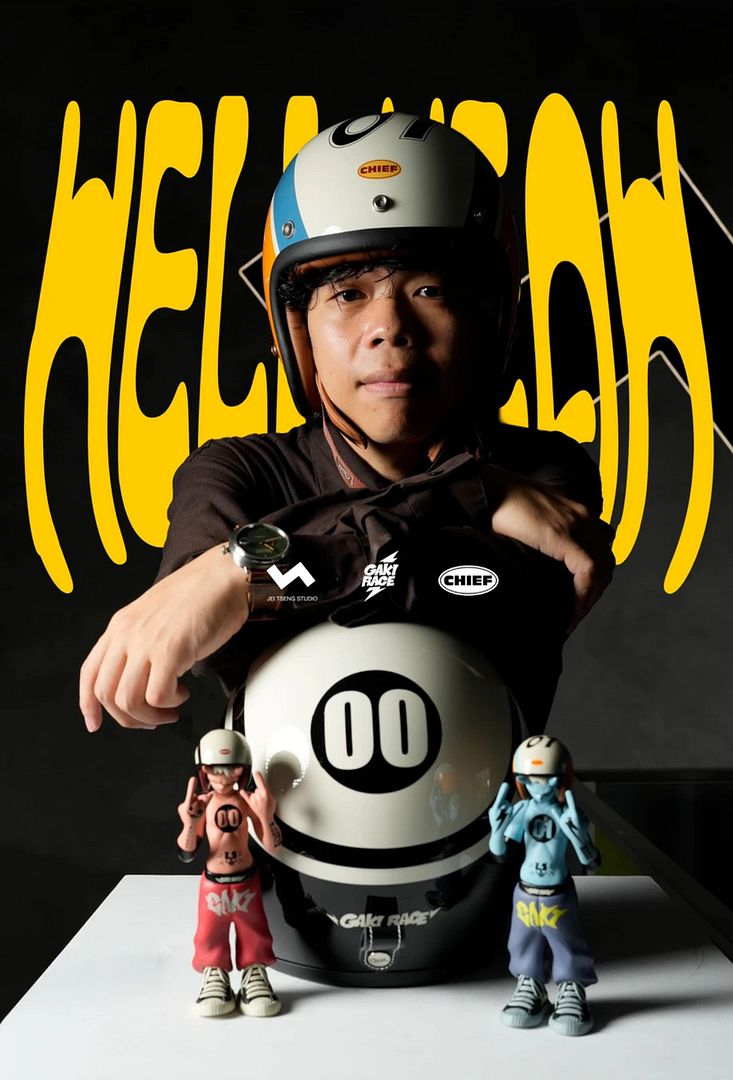 The Helmet: Chief x Gaki Race “Hell Yeah!!” - To complete the collaboration, Chief Helmet dropped an official Gaki Race “HELL YEAH!!” helmet priced at $148 USD — a ridiculous value considering it’s coming from Taiwan’s top vintage-style helmet brand. This isn’t a novelty prop… it’s a legit helmet with real material quality, wearable construction, and graphics straight from JTSTUDIO’s IP world. It’s lifestyle merging with figure culture, the virtual colliding with the physical… exactly the vibe JT keeps talking about. JT’s whole philosophy has always been about bringing street energy, motorsport grit, and pop-sculpt design into the toy space. Chief Helmet brings authenticity from the other side — real motorcycle heritage, retro racing silhouettes, and collectible lifestyle gear.