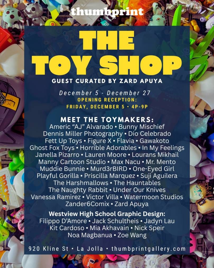 SAN DIEGO is getting lit (Christmas time pun) with toy art vibes because Thumbprint Gallery just announced The Toy Shop, a brand-new exhibition opening December 5 in La Jolla. Curated by artist and toy-maker Zard Apuya, this show celebrates creativity in its most playful form... and I seriously love how deep it goes into every corner of the designer toy scene. We’re talking everything from resin to sofubi to vinyl to clay, wood, ceramic, plastic, and so much more, with 40+ artists throwing down... and this is a local show for me, so hopefully I can go see this stuff in person!