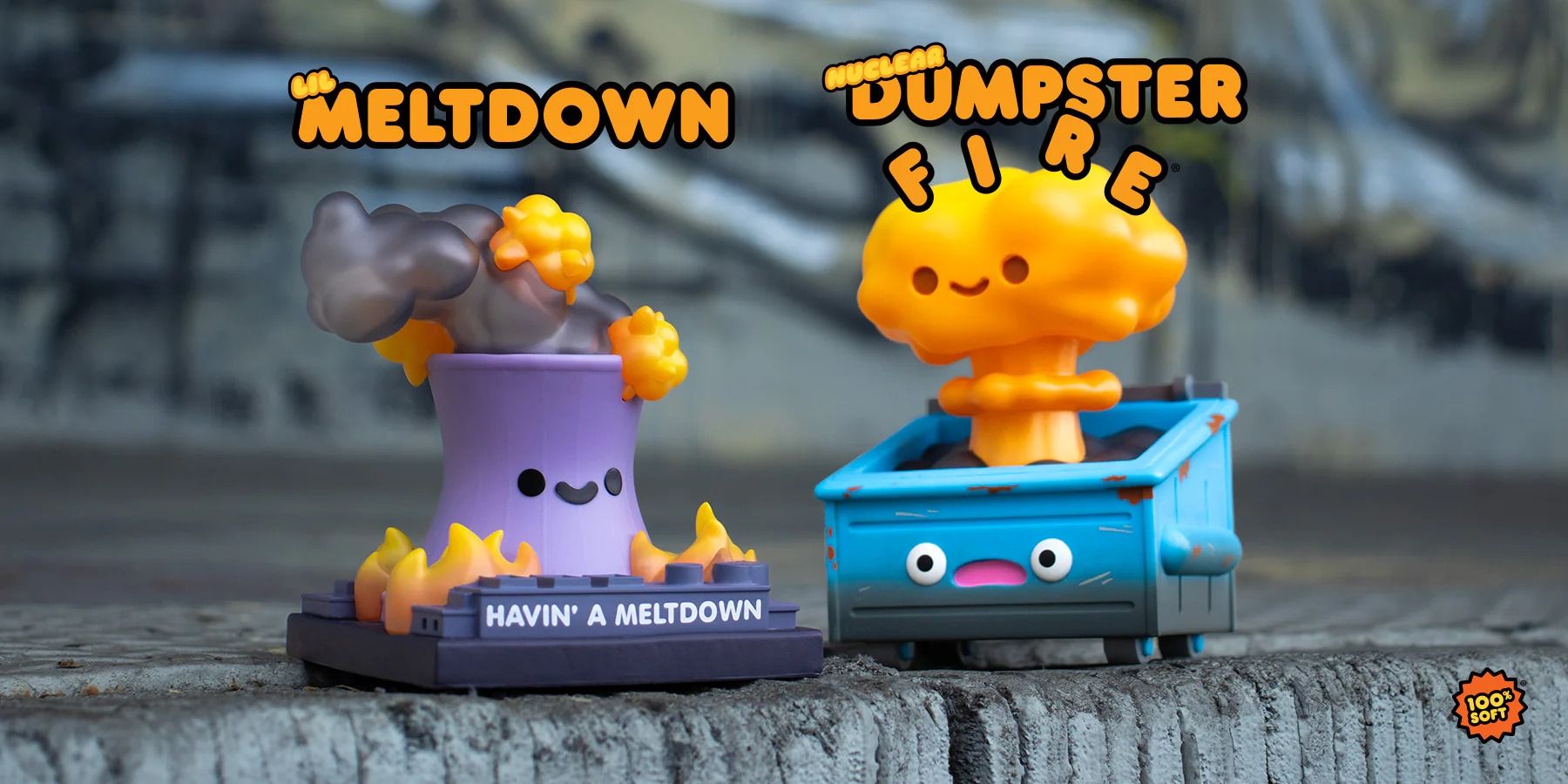 It’s the end of the world as we know it… and honestly… we feel fine. 100% Soft is back at it with a double dose of adorable apocalypse vibes, dropping the Nuclear Dumpster Fire and the Lil Meltdown Vinyl Figure this Thursday… and yeah… things are getting gloriously unstable.
