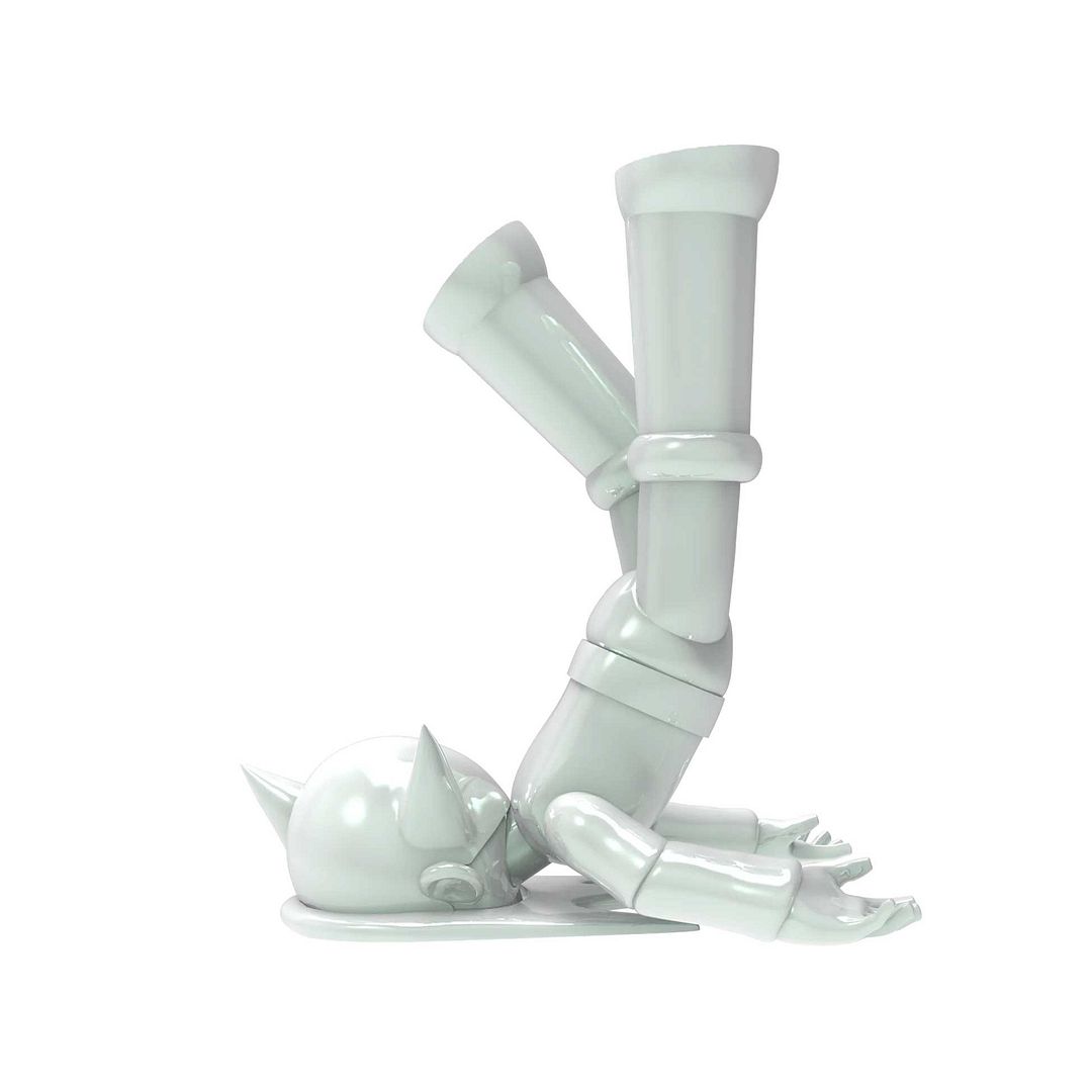 Standing at an impressive 20 inches tall, Astro Crash has the kind of scale that quietly takes over a room. Whether displayed on a pedestal, a low plinth, or even as the unexpected centerpiece on a table, it pulls the eye immediately. The Pearl White gloss finish gives it that clean, gallery-ready polish, reflecting light beautifully and amplifying every curve of the sculpt. There’s something playful about the pose… but the execution is all serious collector energy.