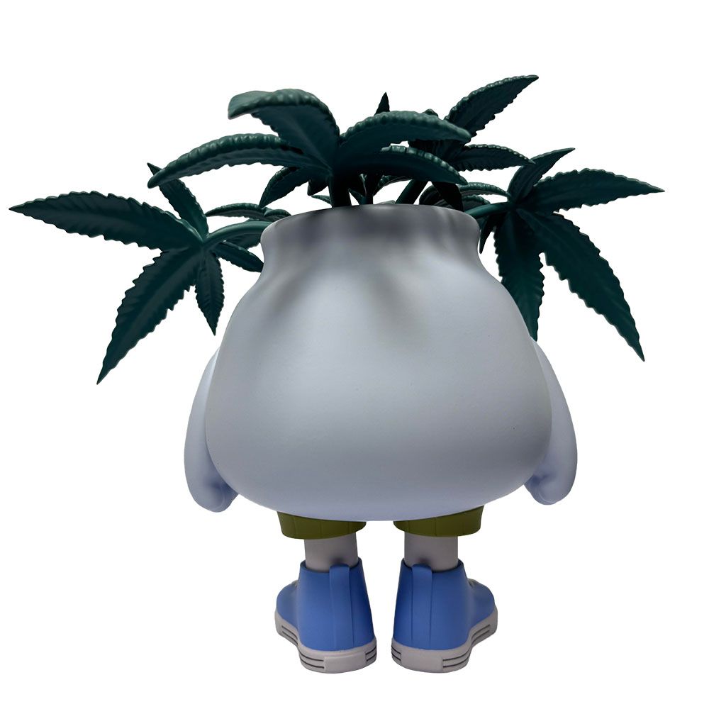 Pothead brings a mellow, almost therapeutic vibe to the designer toy space… rocking a clean, rounded sculpt with droopy eyes, subtle expression, and those signature leafy “hair” details that give it personality without trying too hard. Paired with sneakers and a simple stance, it hits that perfect intersection of urban culture and collectible design.