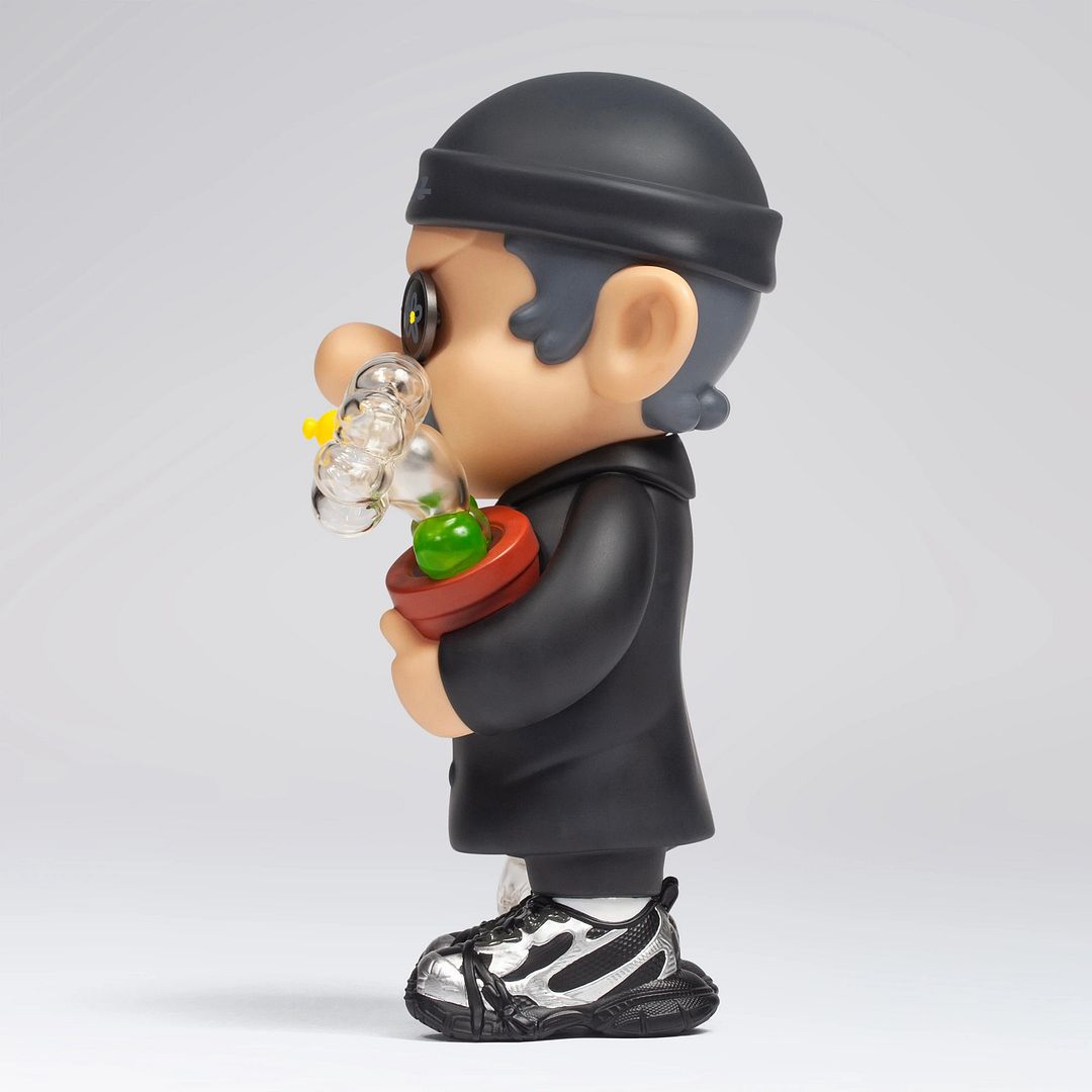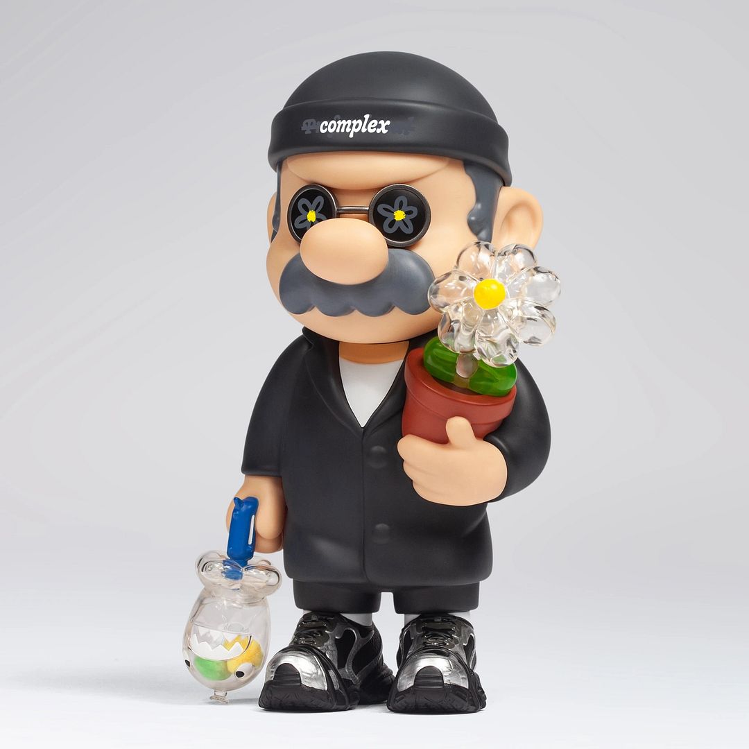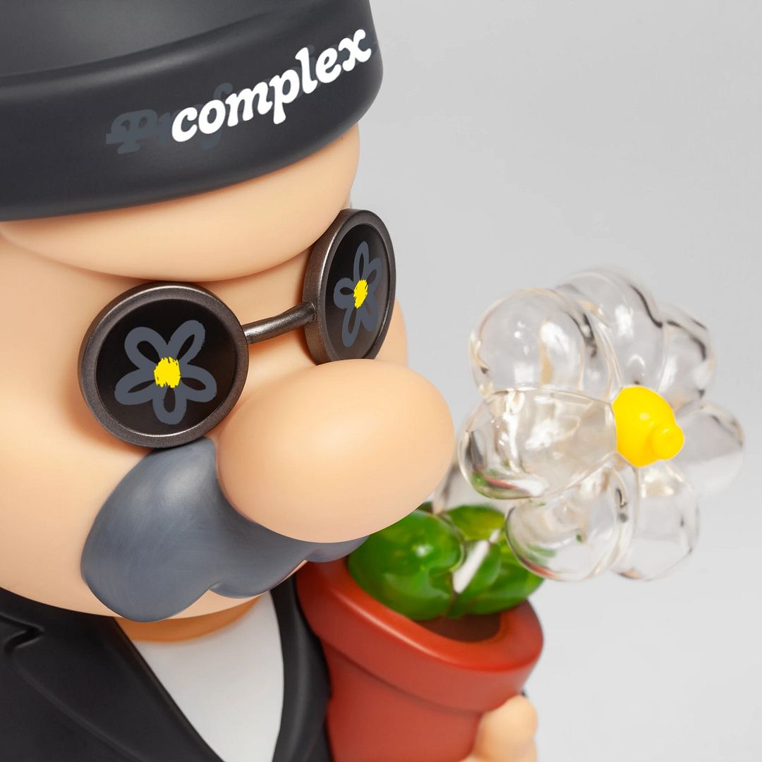 Fools Paradise returns with a slick new release titled “COMPLEX // PROFESSIONAL,” a designer toy that blends playful character design with subtle cultural cues. Standing approximately 260mm tall (just over 10 inches), the figure features a stylized character outfitted in an all-black ensemble, complete with signature round shades, floral details, and a mix of translucent elements that elevate the overall aesthetic. From the clear sculpted flower to the small companion accessory in hand, the piece balances humor, craftsmanship, and clean design.