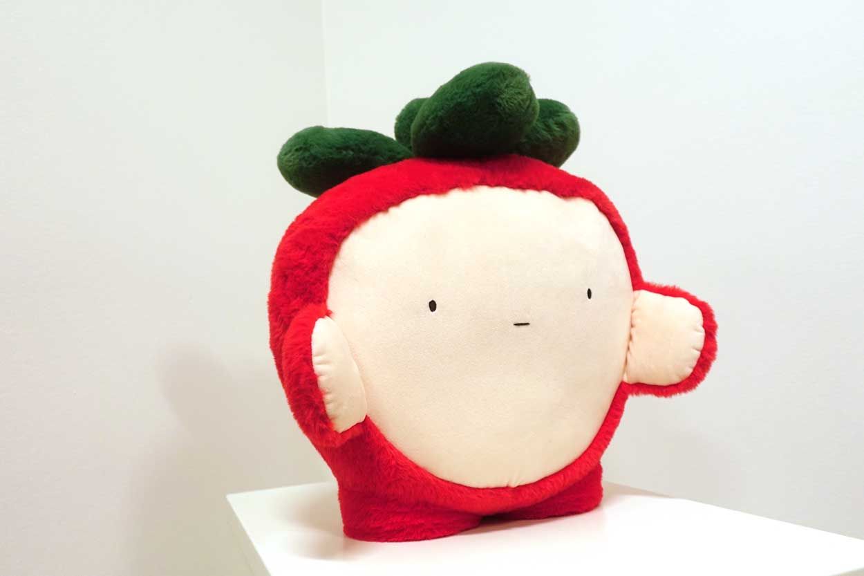 Right out the gate, what stands out here is the intention behind the project. These aren’t just plush toys… each character in The Sprouts lineup is designed with its own personality, structure, and fabric choices… giving them a more thoughtful, almost art toy–adjacent feel. Simon sets the tone perfectly with a super clean, minimal face, soft sculpted form, and that bold strawberry silhouette that instantly reads from across the room.